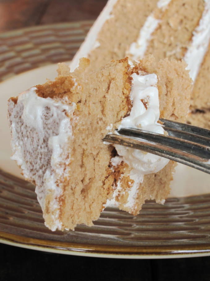 - Level the layers of the cake using a serrated knife and then place into the fridge until cold. Use a spatula to spread the meringue over the entire surface of the first layer of the cake. Place the second layer of the cake on the frosting and then repeat. Frost the outside of the cake and remove the extra frosting to crumb coat the cake to avoid crumbs getting into the outer layer of frosting. Place in the fridge for half an hour and then frost with the remaining frosting.